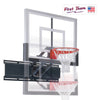 The First Team Titan In Ground Adjustable Basketball Goal Series massive 6" square, 3 / 16" thick vertical post, and extra heavy-duty dual-strut extension arm provide the toughest, most rigid standard in the industry. The post is set back 4 feet from the backboard to maximize safety. The bolt-down anchor footing allows you to easily relocate the unit if you move.